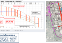 Im Gewerbegebiet entlang der Zschortauer Str. im Leipziger Norden sollen, wegen baulichen und hydraulischen Handlungsbedarfs, die bestehenden MW-Kanäle saniert werden. Grundlage für die Sanierungsplanung war ein hydrodynamisches Kanalnetzmodell als Ausschnitt aus der Generalentwässerungsplanung (GEP) der Leipziger Wasserwerke.