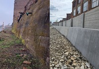 Hochwasserschutzwand aufzubauen und entlang der neuen Wand einen gepflasterten