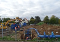 Beginn Rohreinzug in der Leipziger Waldstraße